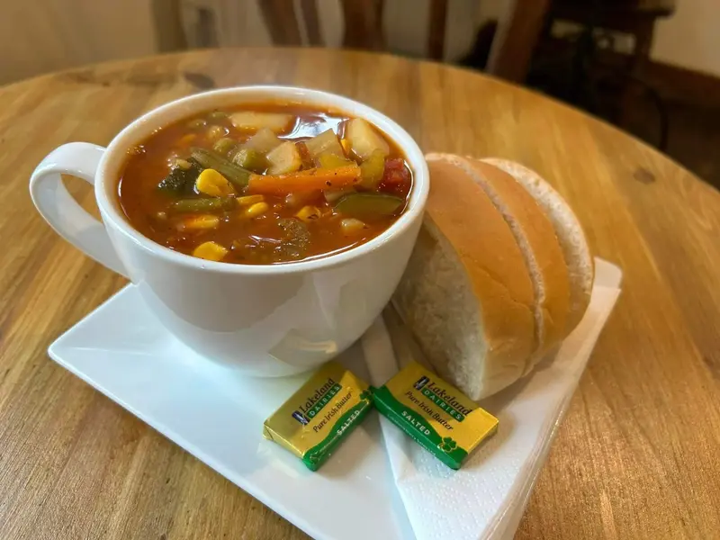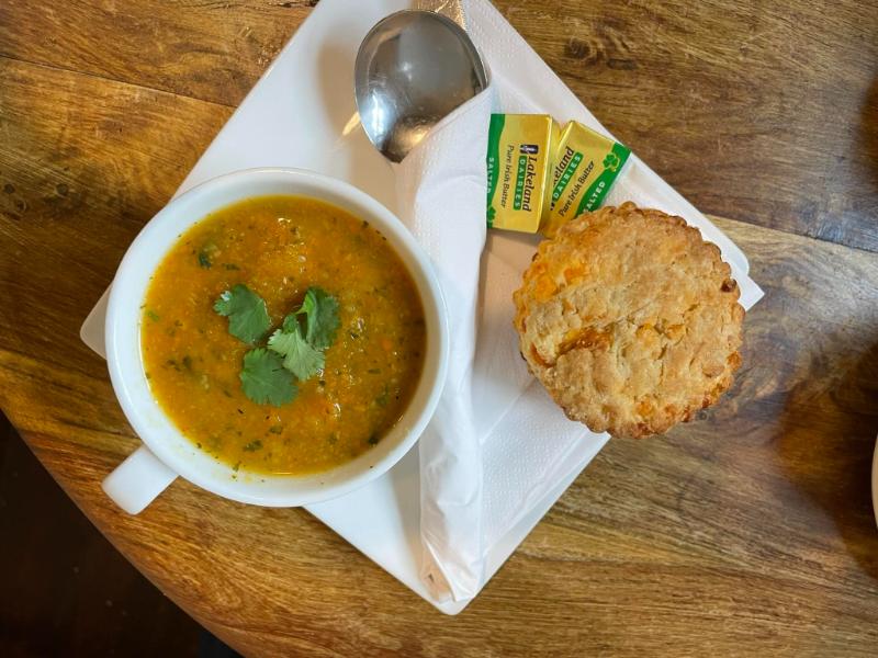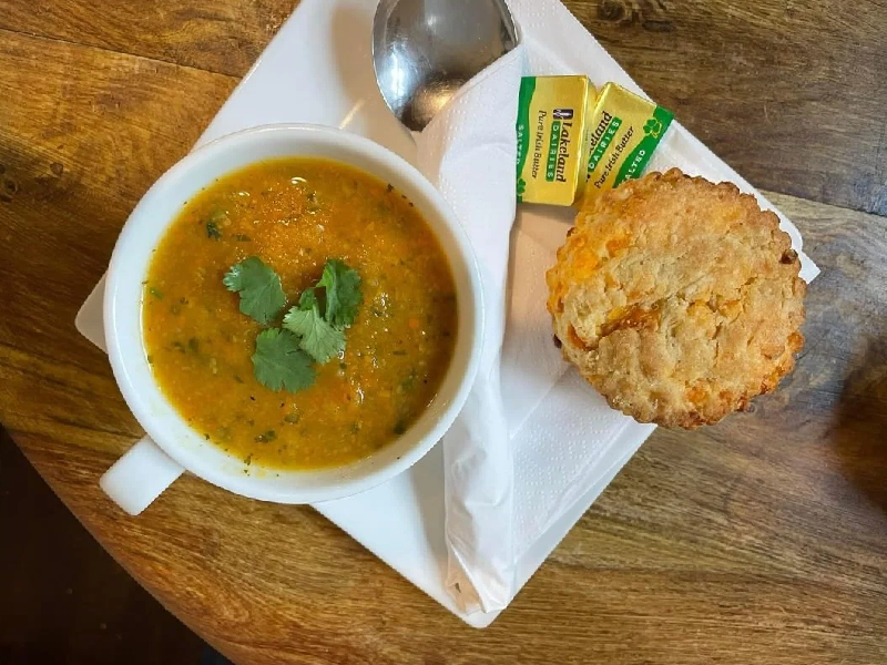 Along with our Local Suppliers, Sunniside Courtyard Café offers some delicious Homemade Soups and favourites like our Homemade Corned Beef Pie & Chips. While deciding which of our Tasty Deserts to choose from, like our Carrot and Chocolate Cake or Red Velvet and Victoria Sponge.